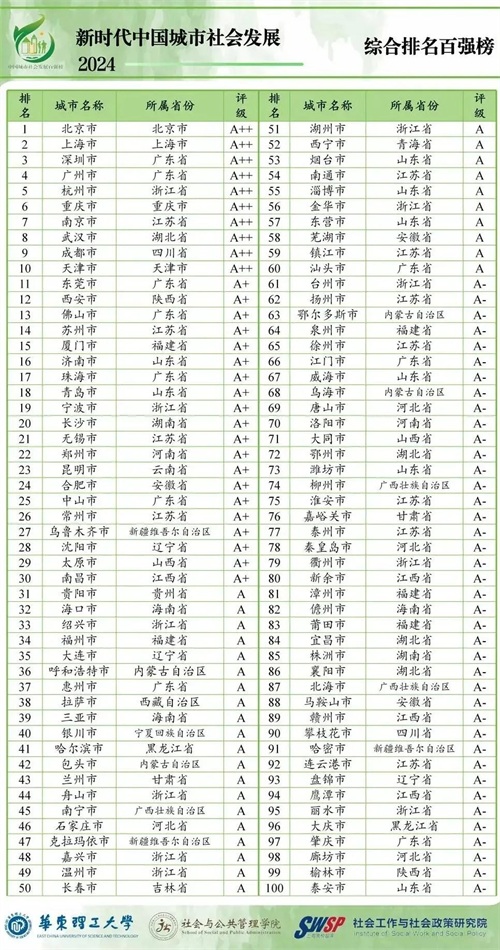 东莞、西安、佛山、苏州、厦门、济南、珠海、青岛、宁波、长沙排在该榜单的第11-20位。与此同时,郑州、合肥、福州分别排在榜单的第22、24和34位。