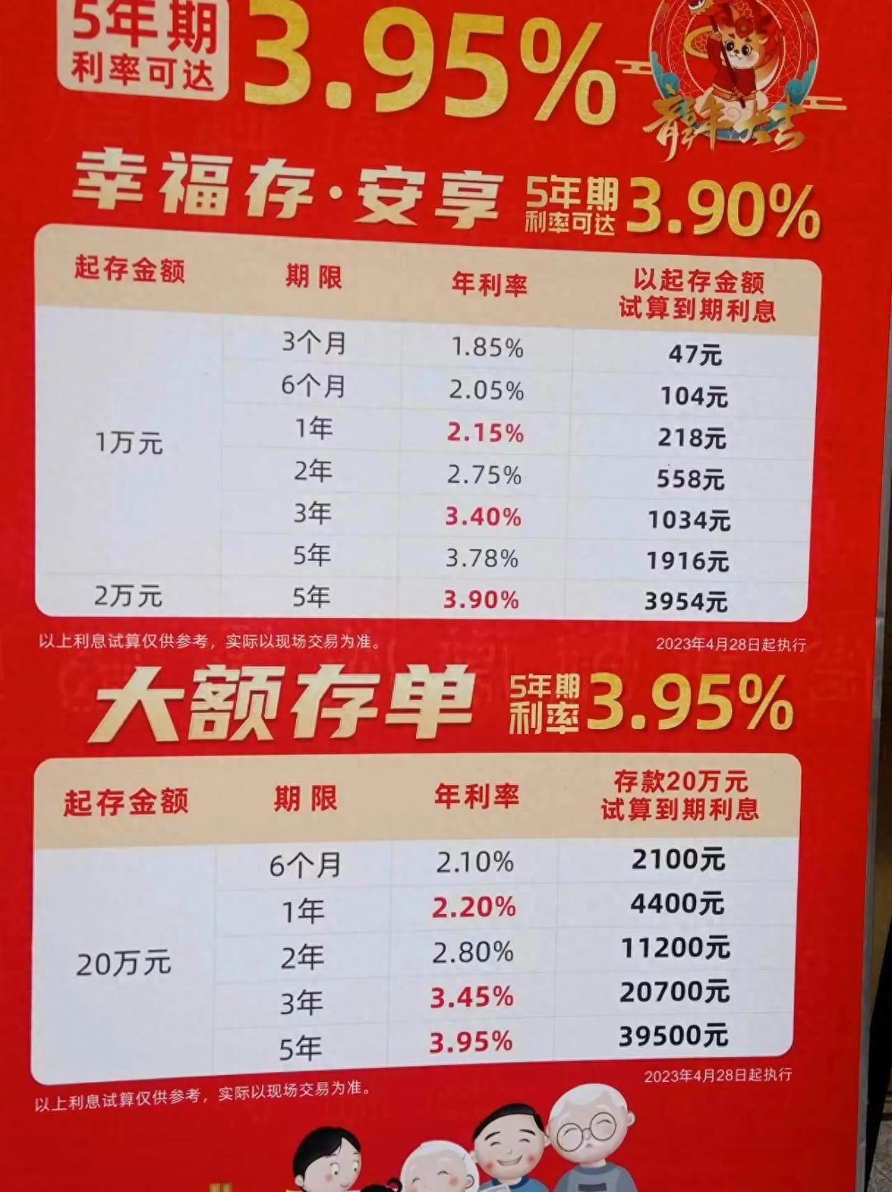 不过存款利息高低也和你所在的地方有关系,比如现在全国利息最高的要数四川最高了,四川的遂宁银行的利息就高达3.95%,这个利率在全国可能最高了。另外四川的达州银行利息也还不错,达州银行5年期的存款利率也能达到3.9%,在当下这个时候里3.9%的利率也是非常不错了。