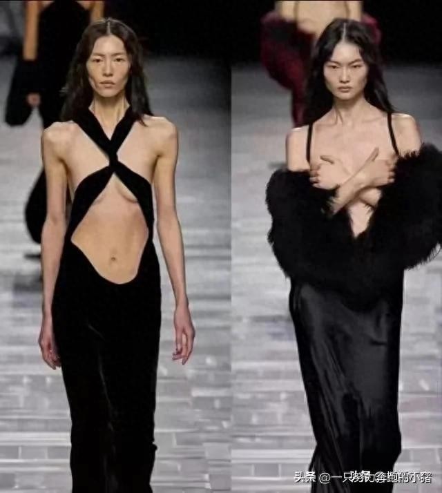 在“赤裸真相”时装秀中,模特们身着近乎透明的衣物,胸部、臀部乃至私密部位几乎无遮无掩地出现在T台上。这种设计手法不仅挑战了传统的审美观念,也触碰到了公众道德的敏感神经。