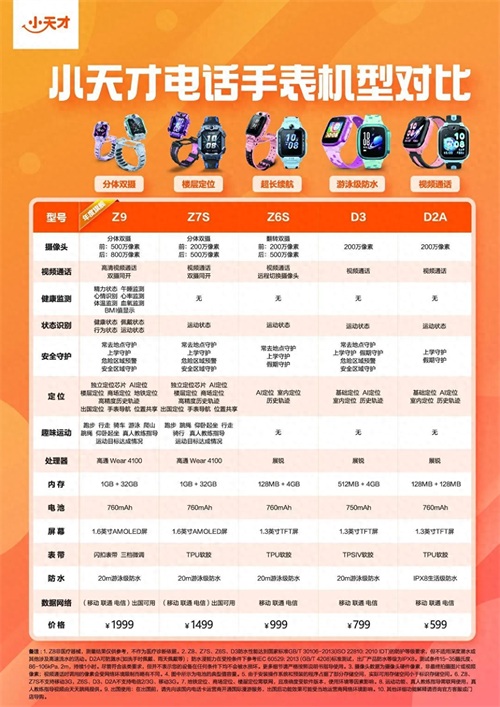 小天才Z7S对比Z9减少了心情识别与心率监测功能,但是同样为分体式设计,有着出色的显示效果和32GB的大内存,支持人脸识别解锁,5秒左右自动实时刷新定位位置,适合平时拍照/录像比较多和对功能性需求比较高的小朋友;