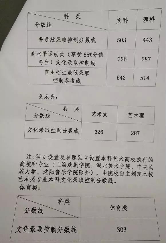 高水平运动员(享受65%分值考生):文科326分,理科287分。