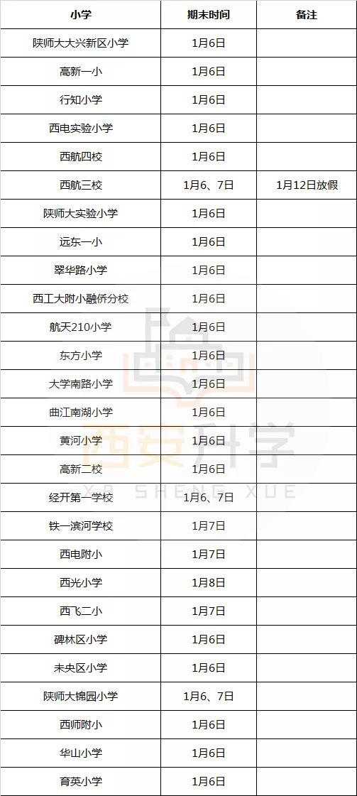 西安28所小学期末考时间公布!中小学1月12日放寒假