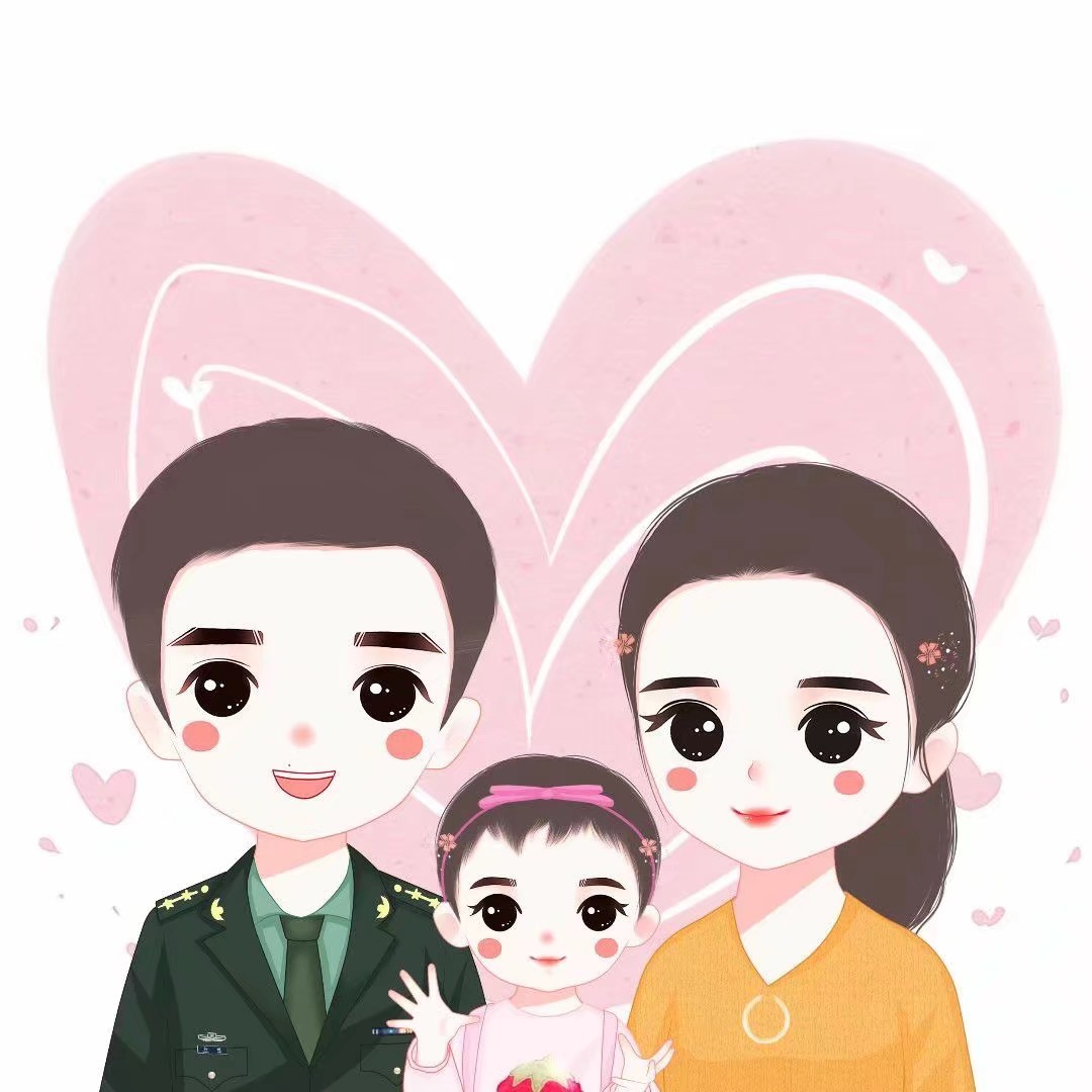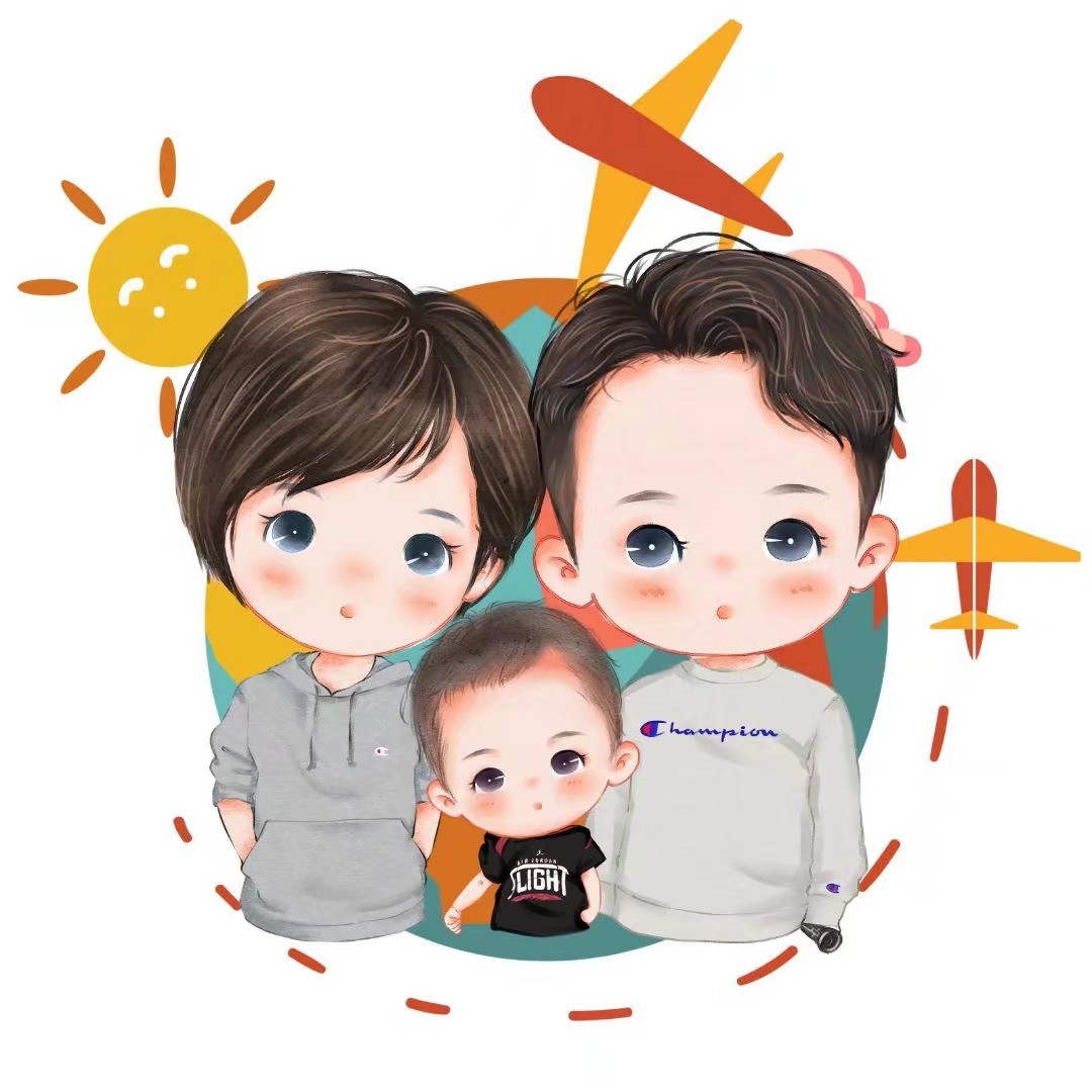 2020最火爆手绘头像,一家三口全家福微信头像。