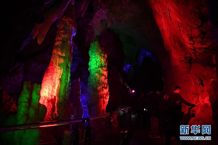 12月5日,游人在天津市蓟州溶洞内欣赏钟乳石景观。 蓟州溶洞坐落在天津市蓟州区罗庄子镇,是天津市唯一的洞穴景观。目前虽已进入冬季,但洞内冬暖夏凉。溶洞内40处钟乳石景观晶莹剔透,千姿百态。 新华社记者 马平 摄