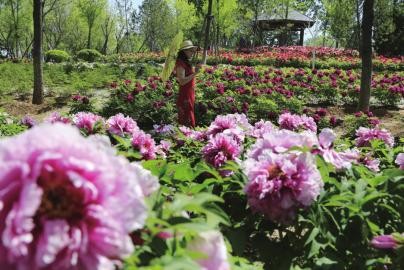花王牡丹硕大迷人。游人在牡丹园赏花游玩。 牡丹花海宛如仙境。