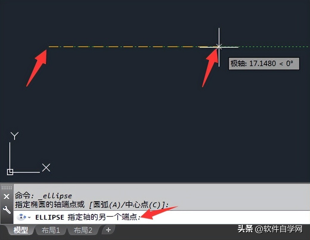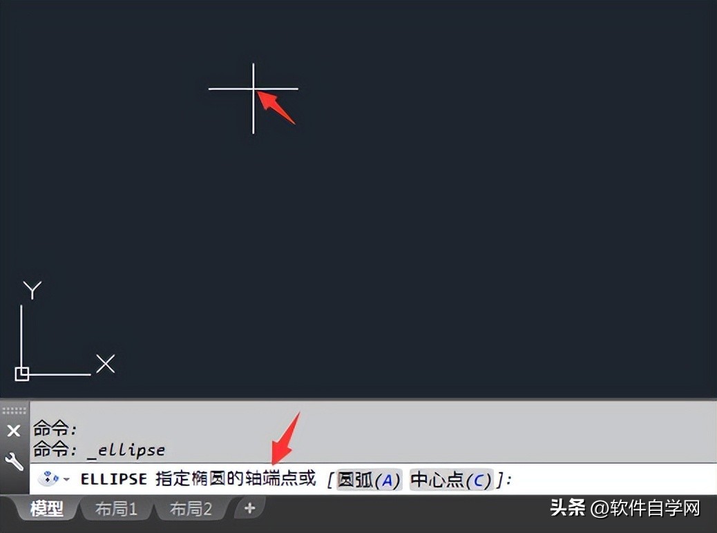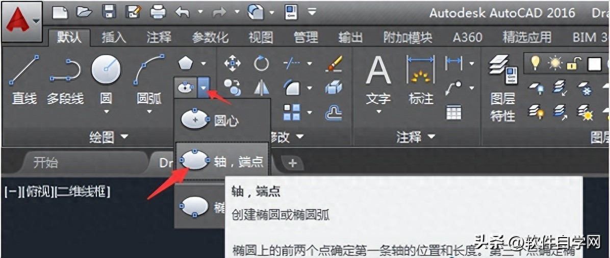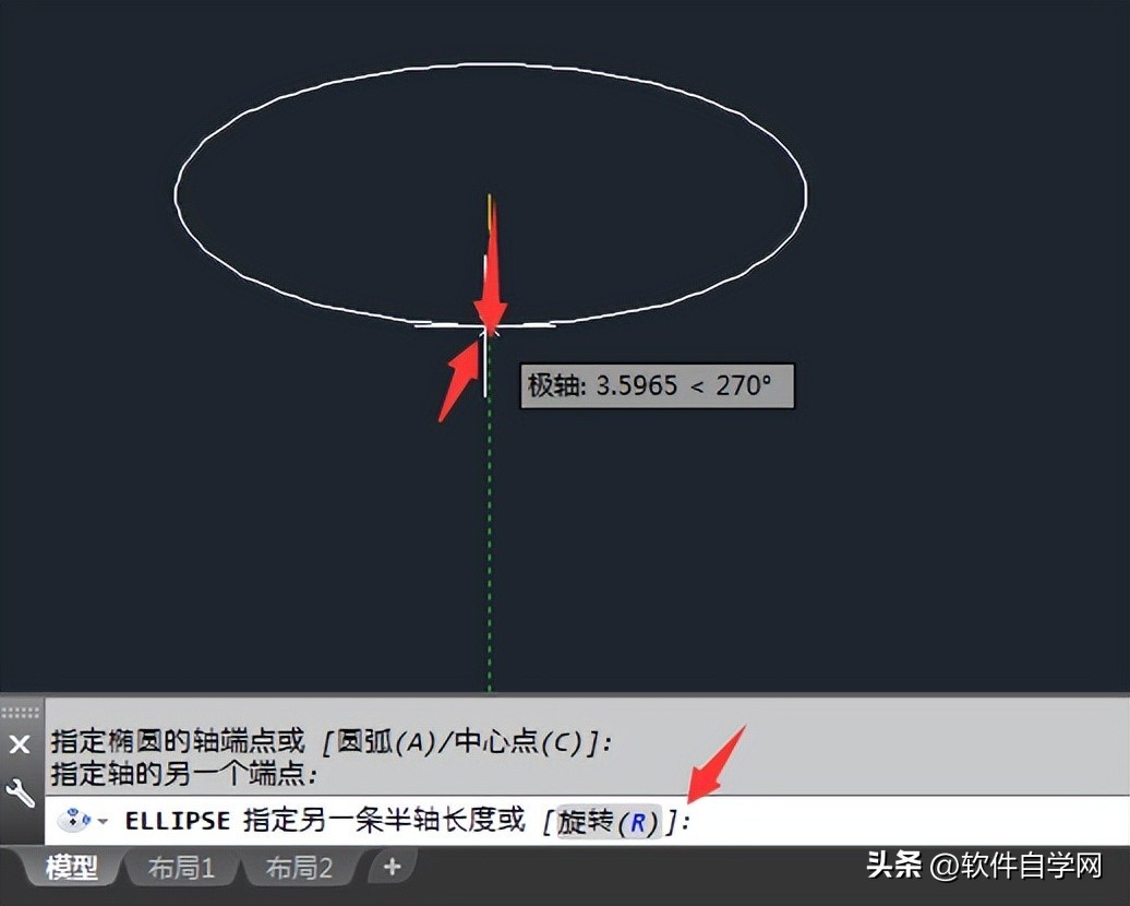 第1步、点击椭圆工具,点击轴,端点。或是按EL椭圆命令。
