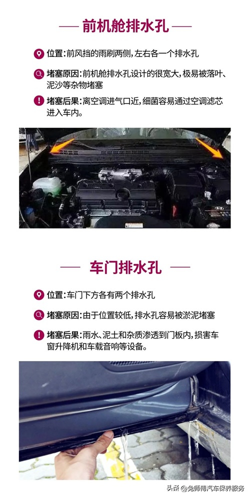 小兔建议各位车主,在洗车的时候可以关注一下,排水口处是否存在杂物、泥垢等,一定要及时清理,确保车辆排水顺畅!