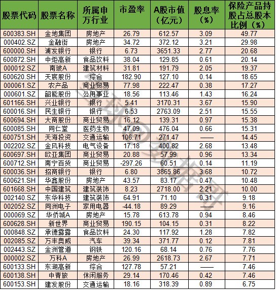险资举牌概念股一览:险资重仓的30只个股名单