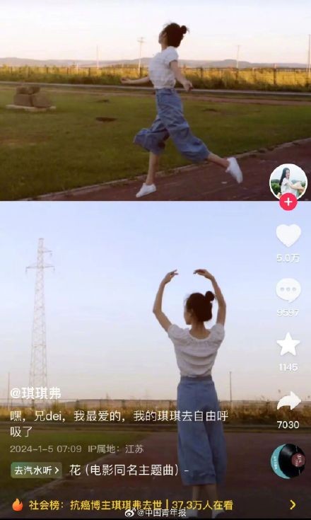 1月4日凌晨,95后抗癌博主“琪琪弗”去世。2018年,黑龙江牡丹江市的琪琪患上了急性白血病。她的父亲曾两次为她捐献骨髓,感动无数网友。琪琪觉得,生病虽然痛苦,但自己反而更加坚强,”现在的我比我生病前的我更让自己喜欢。“两年时间,一次复发,两次骨髓移植,左眼失明,但她却说:“是我的福,我享;是我的劫,我闯。”“坚强的抗癌美少女”,一路走好!