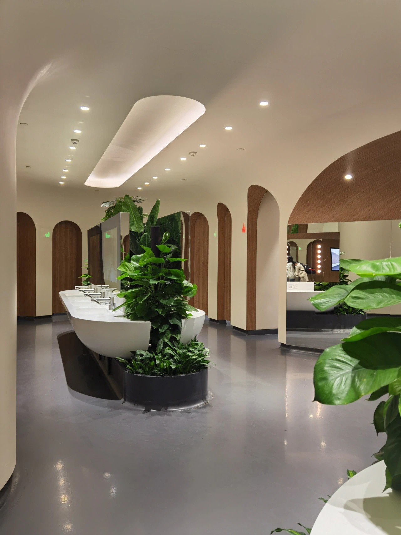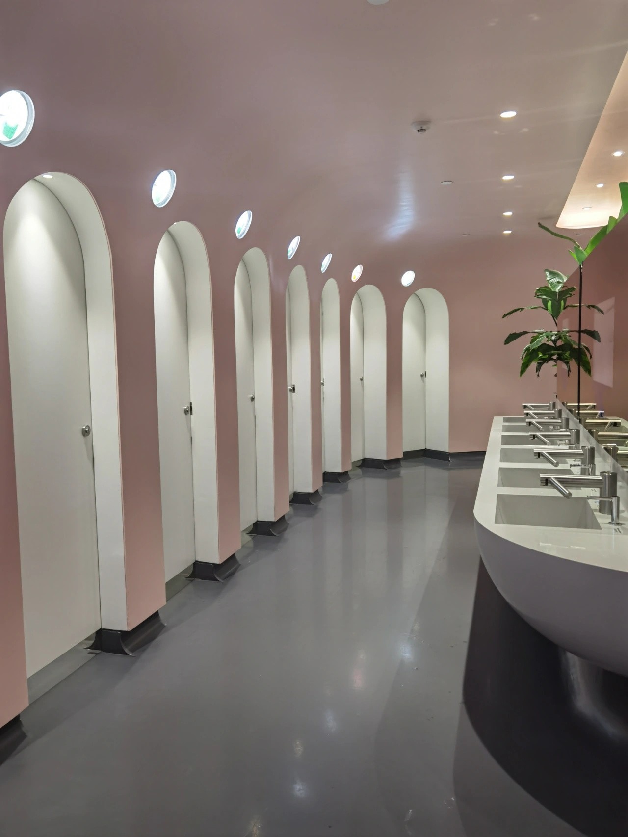 洗手间整体环境走环保森林风,全部隔间被木桶纸颜色的墙包裹着,蛮有神秘感,门比较隐蔽。如果是排队可以看小电视屏幕上显示的哪里有空位,很人性化。️进去后每个隔间厕所还有私家独立小花园,洗漱台一应俱全,