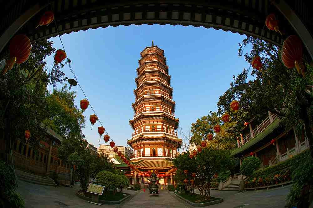 六榕寺以"六榕花塔"为特色标志,曾是禅宗道场,1983年被国务院确定为汉族地区佛教全国重点寺院。