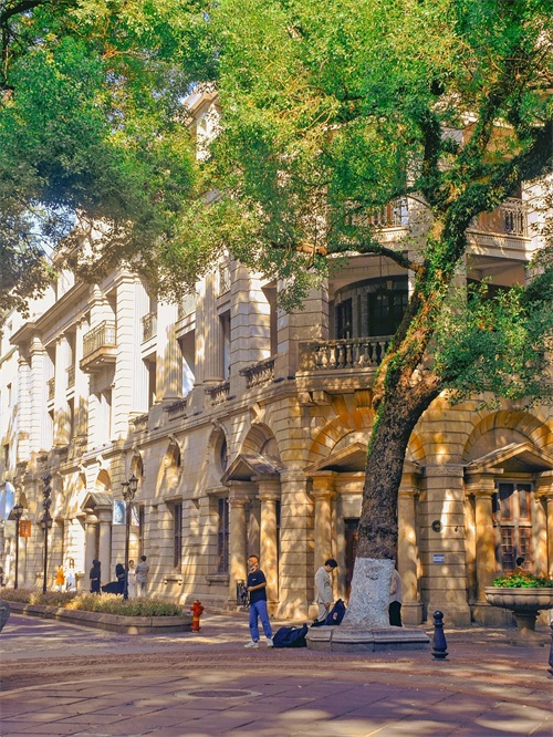 沙面有一个非常好听的名字,叫拾翠洲,珠江冲积而形成的沙洲,故名“沙面”,早期的沙面被英、法等国占为租界,当时的建筑群风貌在之后被较完整地保留了下来,如今岛上的每一处风景都承载着一段历史的过往。