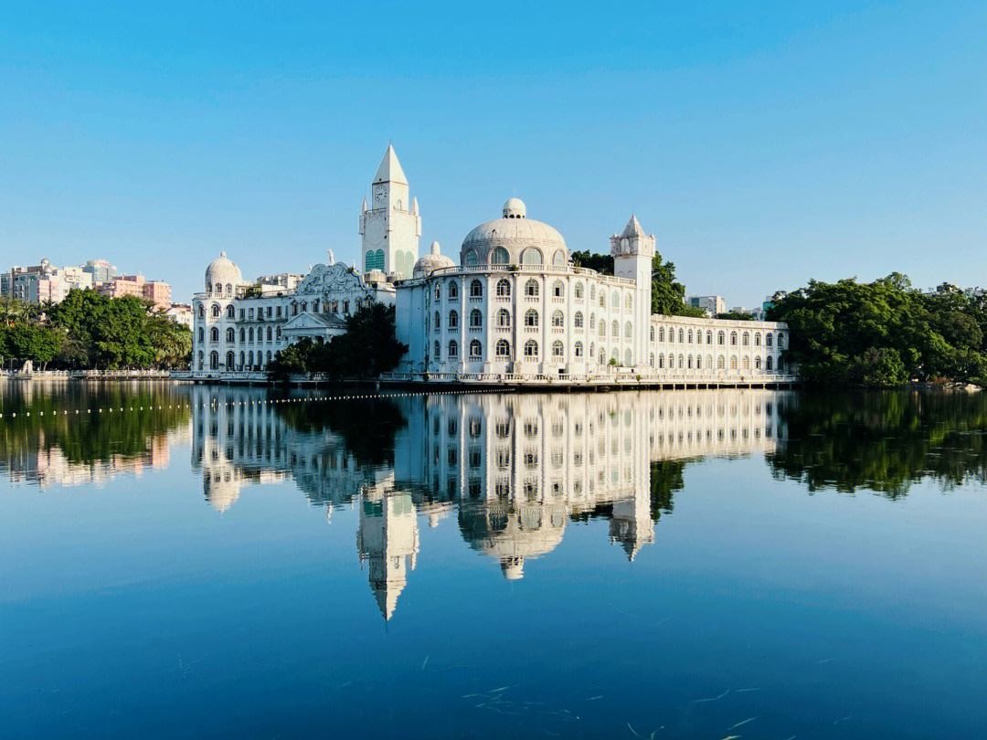 1、荔湾湖公园:优雅柔美的风格。佳木葱茏、曲桥卧波,一派岭南园林风情。湖中倒映出建筑的形态,别有一番风味。