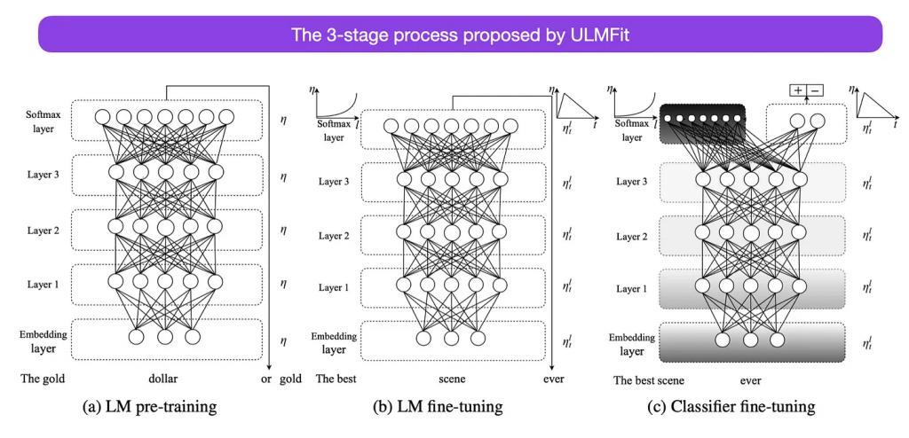 ULMFit 建议的语言模型微调过程分为三个阶段 :