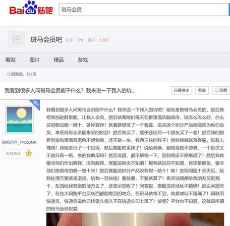 在百度贴吧里,有自称斑马会员的讲述自己如何被洗脑加入,又在购买斑马商品出现质量问题后得不到解决的经历。