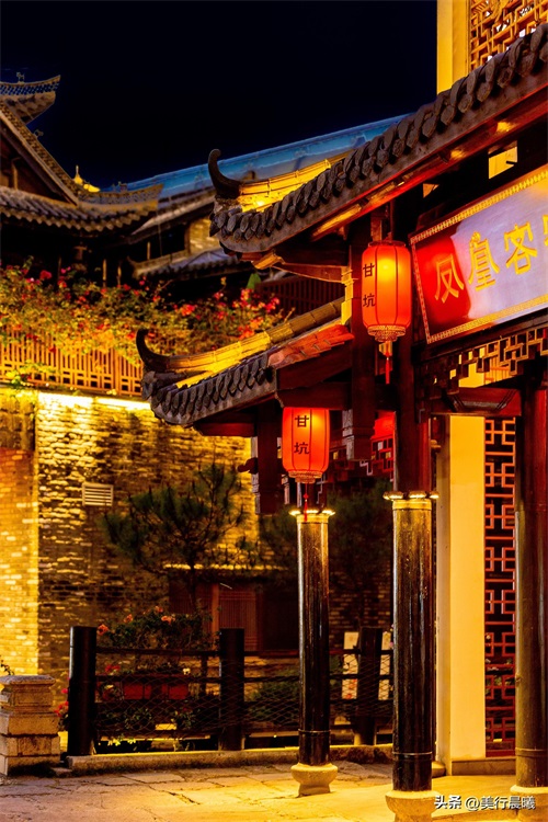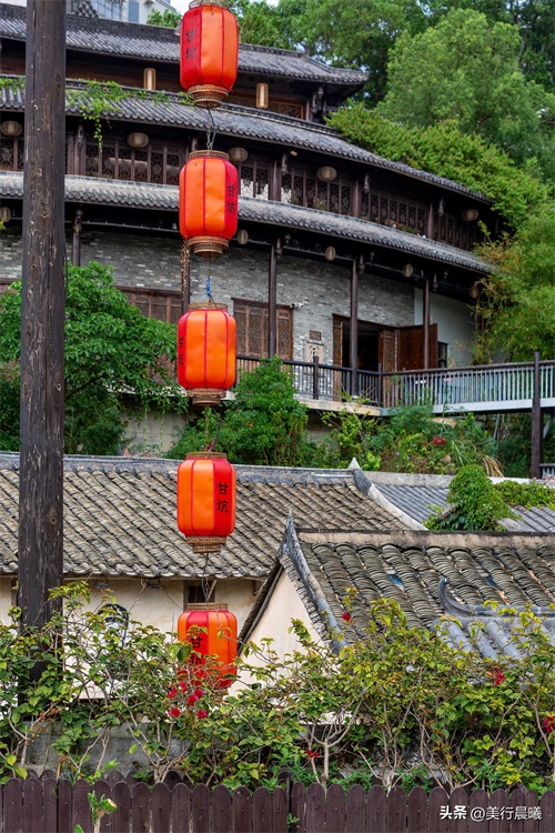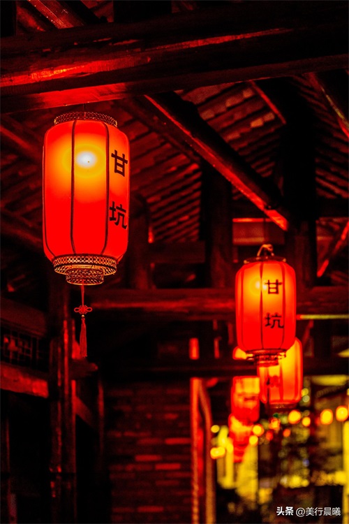 夜幕降临,红红火火的灯笼在百年客韵古镇中交相辉映,使得甘坑的建筑群更加流光溢彩。