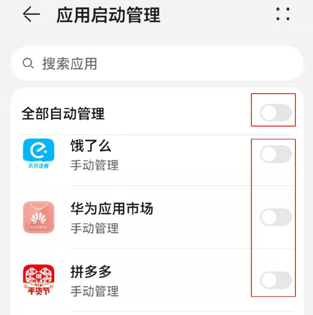 解决方法:在手机【设置】-【应用启动管理】,然后关闭不常用软件的自启动功能。