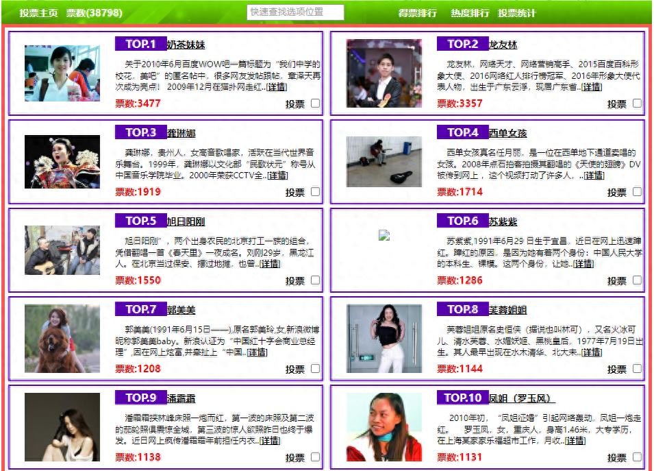 TOP10:凤姐(罗玉凤) 票数: 1131