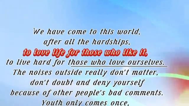 We have come to this world.after all the hardships.to love life for those who like it.to live hard for those who love ourselves.