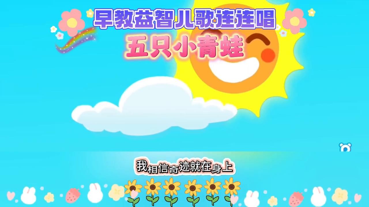 ·五只小青蛙:快乐池塘栽种了梦想就变成海洋,鼓的眼睛大嘴巴同样唱的响亮,借我一双小翅膀就能飞向太阳,我相信奇迹就在 上。