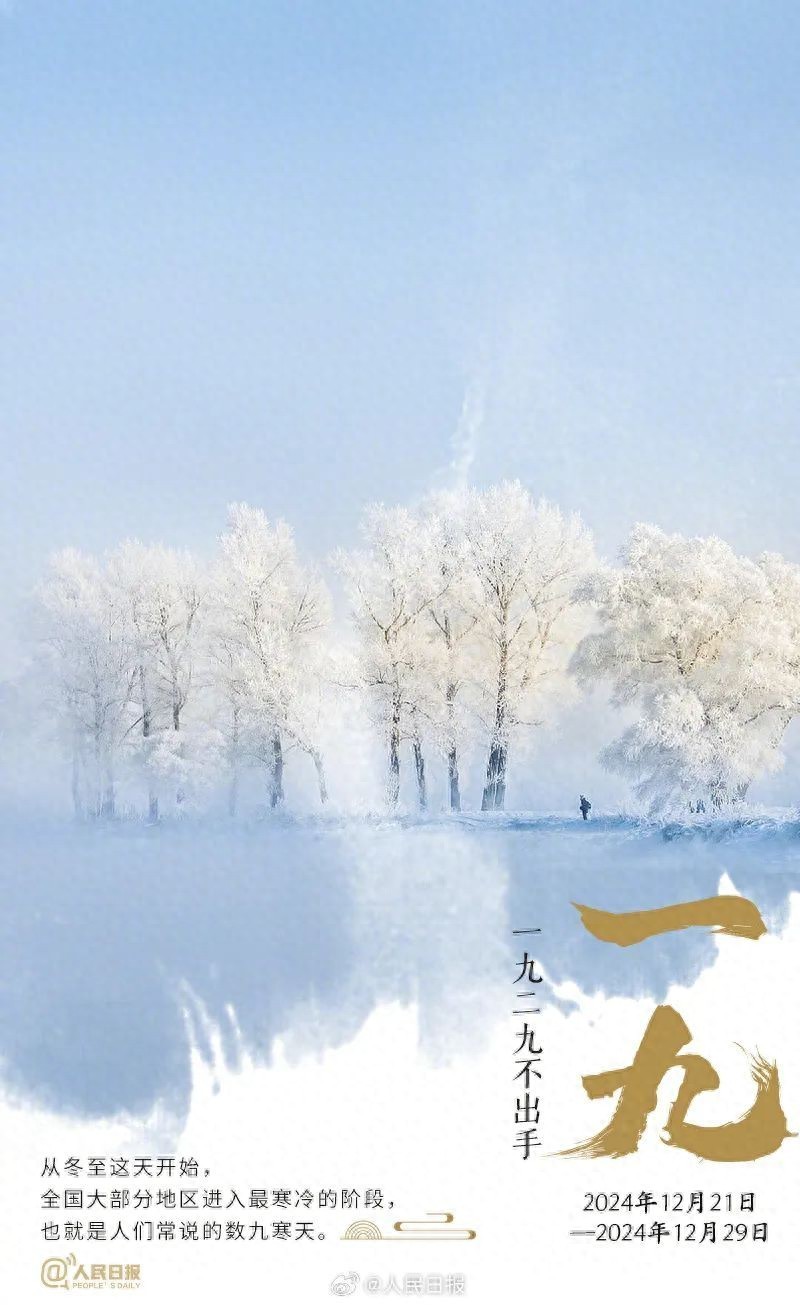 12月21日已迎来冬至节气,数九寒天也正式开始了。“一九二九不出手,三九四九冰上走,五九六九沿河看柳,七九河开,八九雁来,九九加一九,耕牛遍地走。”什么是“数九”?如何健康过冬?今冬数九时间表来啦,快点收藏吧↓