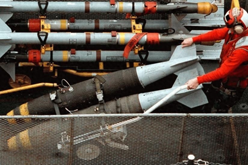 这是Mk 83 1000 磅炸弹,每枚炸弹含有约 500 磅高爆炸药,相当于近 700 磅 TNT。