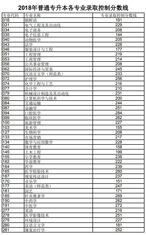 山东2018年普通专升本各专业录取控制分数线公布