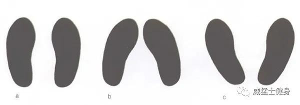 下面说说脚的姿势对这个动作的影响。脚尖向前(图a),针对整个腘绳肌训练;脚尖向内(图b),重点针对腘绳肌内侧;脚尖向外(图c),重点针对腘绳肌外侧。