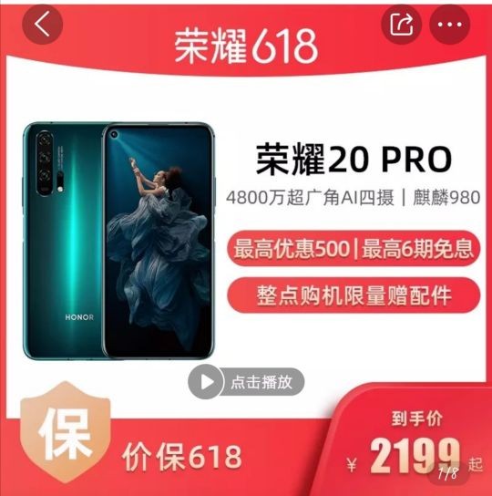 现在正是荣耀618大促,荣耀20PRO作为荣耀数字系列的最后一款4G旗舰手机,只要2199元起!小伙伴们,快来支持一下叭!