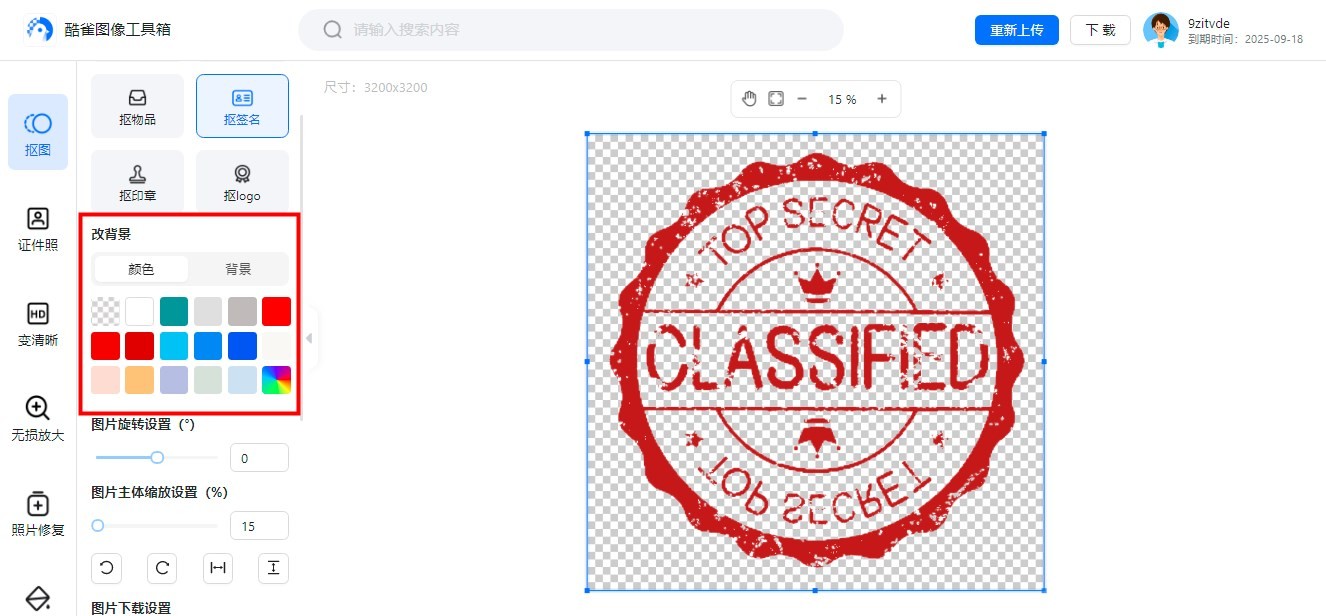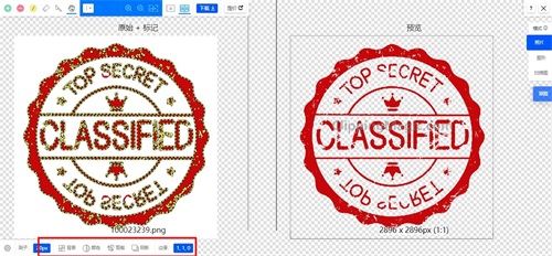 第二步,图片上传后网站开始处理抠出印章,完成抠图后在界面中可以预览到效果图。