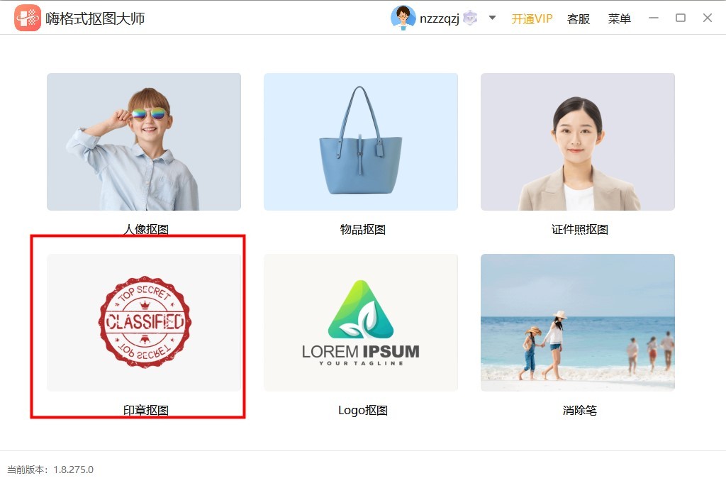 第一步,下载『嗨格式抠图大师』软件,打开软件后选择首页中的【印章抠图】。