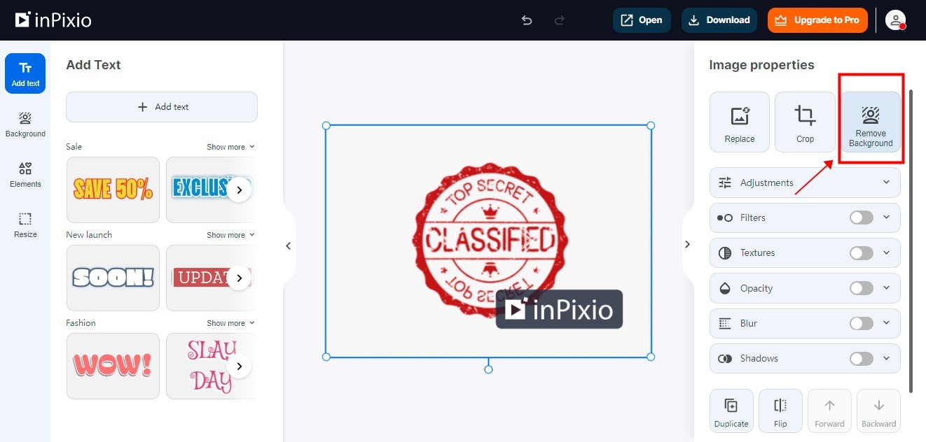第三步,图片上传后在照片右侧点击【Remove Background】按钮,然后网站开始处理抠出印章,完成抠图后在界面中可以预览到效果图。