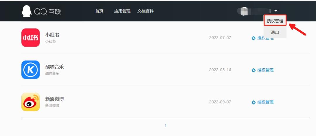 2、点击头像下拉,找到“授权管理”,即可查看到QQ曾经授权登陆、注册的平台了。