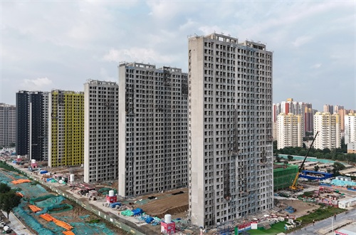 2024年8月19日,中铁二十局的工人在河北省保定市城中村改造三期工程南刘各庄村安置区项目建设工地施工(无人机照片)。新华社记者 杨世尧 摄
