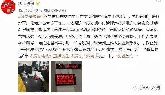 济宁市房产交易中心被撤销省市级文明单位称号!众网友:心情不可描述