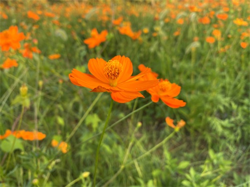 硫华菊又名黄秋英、黄波斯菊、黄花波斯菊、硫黄菊、硫磺菊、黄芙蓉。为菊科秋英属一年生草本植物,性强健,易栽培。春播花期6-8月,夏播花期9-10月。