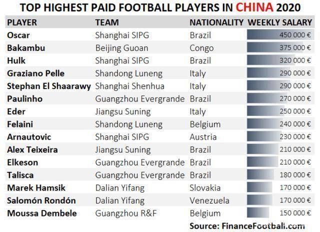 一周薪水就够买一套房,中超球员薪水排行出炉
