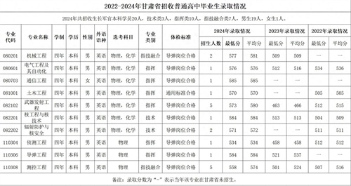 2025年甘肃省想报考火箭军工程大学的家长同学请查阅参考。火箭军工程大学各专业近三年在甘肃省录取分数线!