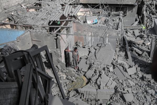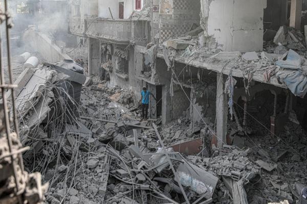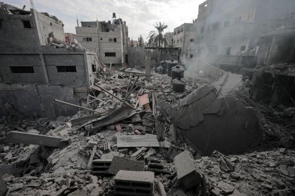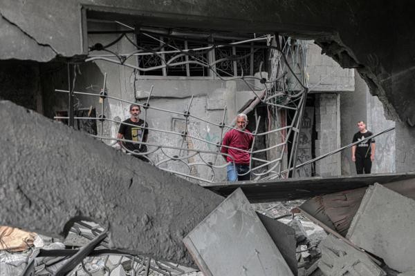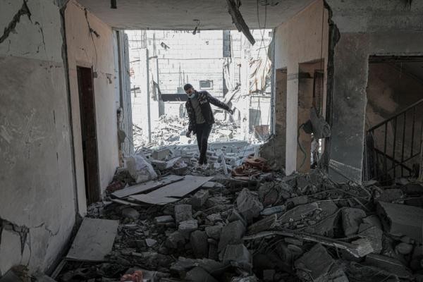 11月13日在加沙地带中部地区拍摄的遭以色列空袭的建筑废墟。