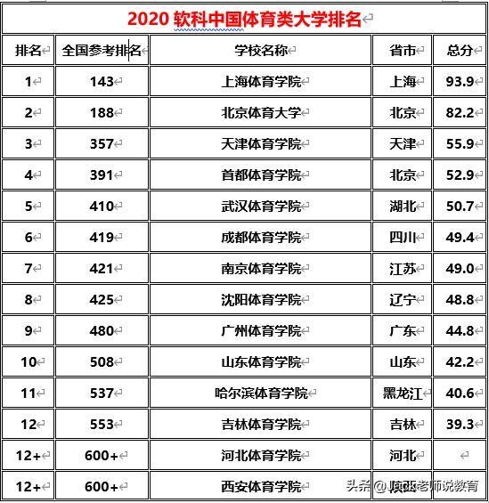 体育类大学共有14所高校上榜,其中上海体育学院、北京体育大学、天津体育学院名列前三甲。