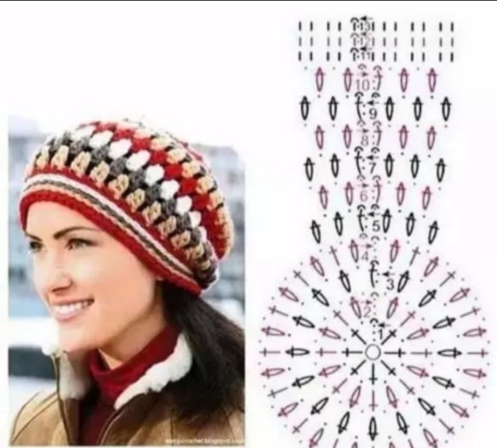 这几款帽子图解都是拉线几次形成的泡泡针花样效果。
