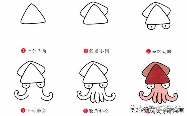 每天学一幅简笔画-章鱼动物简笔画步骤图片大全