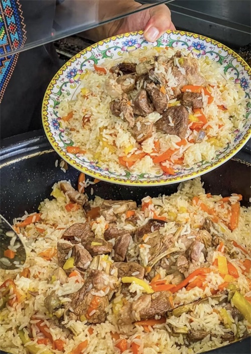 搭配着羊肉和各种蔬菜的手抓饭,口感丰富,令人回味无穷。