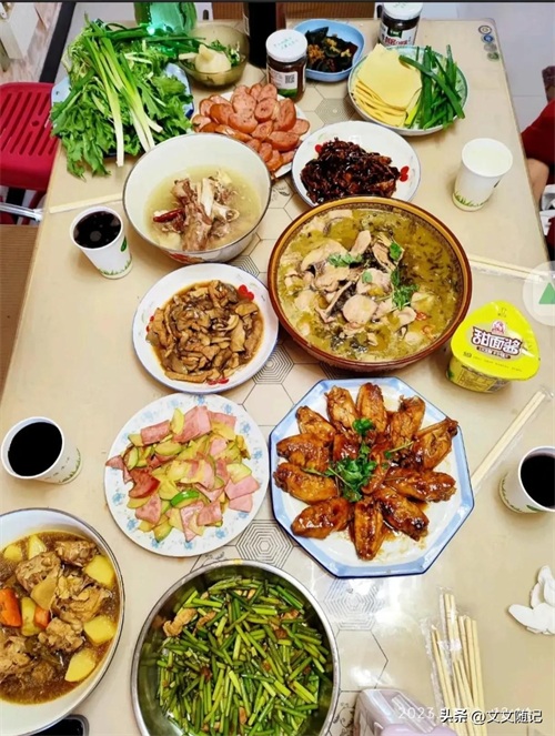记得是我儿子两岁时候,老公五个发小关系好,离得近,好像是单又建议,每年这五家人在初一中午聚一次。大家热烈响应。于是每年初一先去拜年,拜完年就在一家集合,女的们做饭,男的们看孩子,大家嬉闹着就把饭做好了,吃的时候先喂孩子,喂饱之后,大的看着小的,然后我们十个人,五对夫妻再吃饭。边吃边聊,发发牢骚,诉诉忠肠。一年的艰辛压抑,一年的欢喜兴奋,就在这推杯换盏间重启又消化,吃完喝完,女的们再说说笑笑的把碗筷收拾整齐。那时候的农村还不兴女的带孩子出去吃饭,但我们却可以大摇大摆的坐在一起大碗喝酒大口吃肉。引的周围的同龄人很是羡慕。