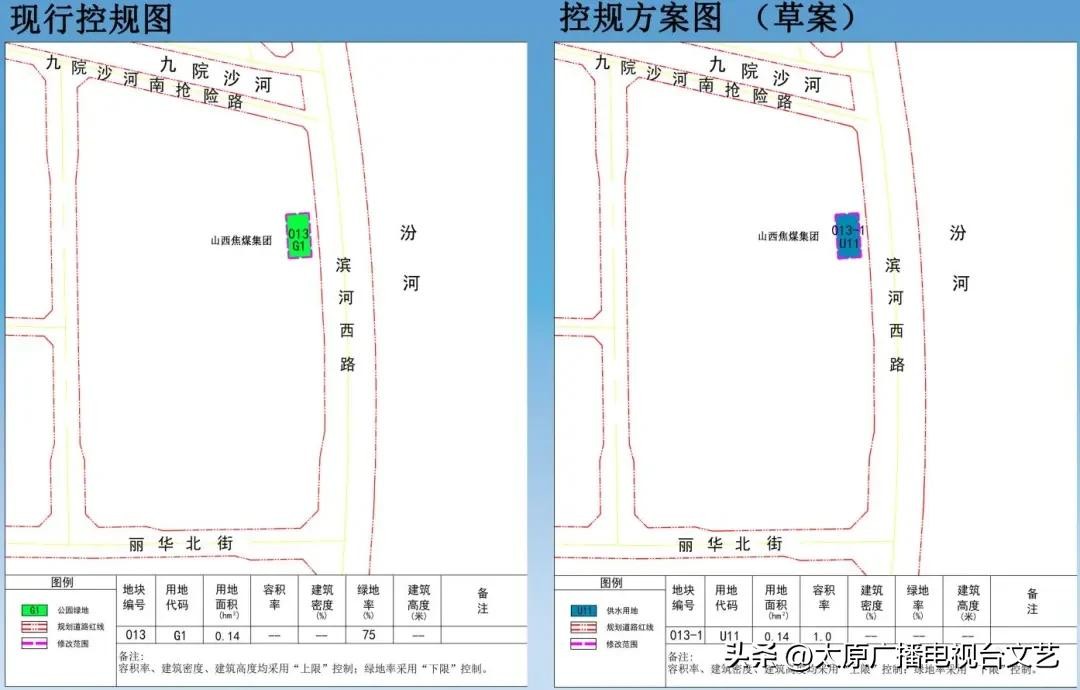 修改范围为北、南至现状公园绿地,西起山西焦煤集团,东至滨河西路,修改用地0.14公顷。