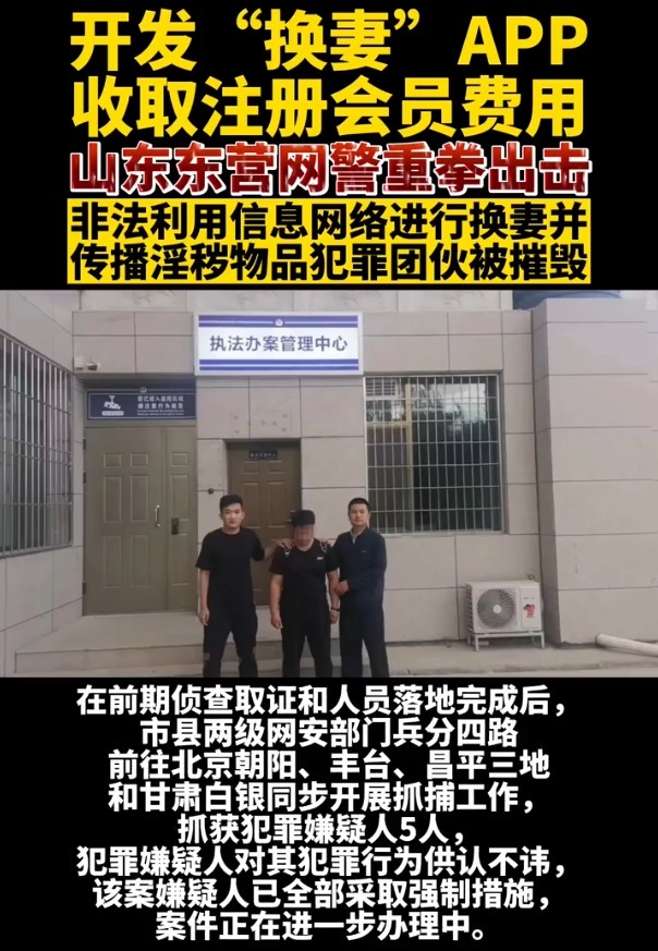 最近,一起引人注目的新闻事件在山东东营利津地区引起了广泛关注。据报道,当地网安部门接到举报,称一款名为“换妻”的非法APP在网上大量传播淫秽视频和图片,内容不堪入目。这款APP的开发者姜某和犯罪嫌疑人刘某为了满足其换妻的特殊癖好,利用网络编程能力开发了这个基于地理位置的夫妻交换平台,并收取注册会员费用。该APP的注册用户在境外社交网络平台上发布大量淫秽色情照片、视频和挑逗性文本内容,点击量巨大,影响极其恶劣。警方已经抓获了犯罪嫌疑人5人,其中包括拥有大量粉丝并在平台上发布淫秽内容的犯罪嫌疑人张某、霍某和任某。这些犯罪嫌疑人对其犯罪行为供认不讳。