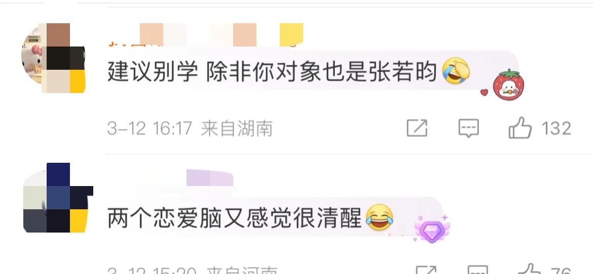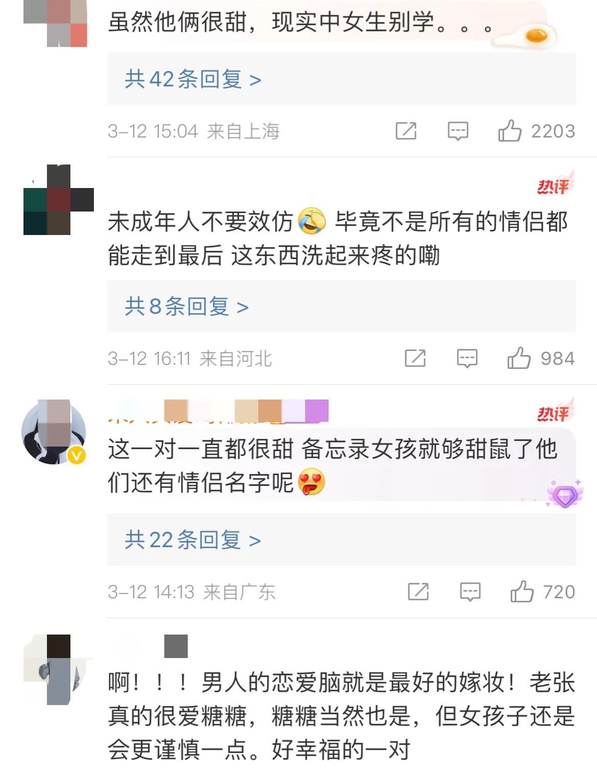 但大多数网友还是很清醒,认为这两个人的爱情确实很甜,但是女生们千万不要效仿,除非你遇上的也是张若昀。