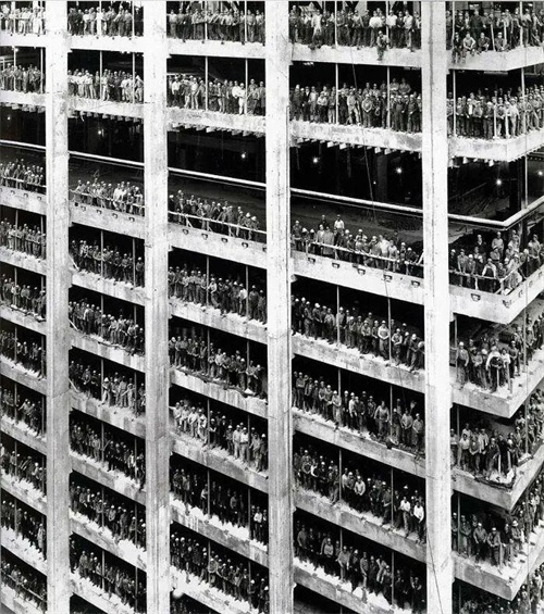 08、1964年8月,3000多名工人在纽约市大通曼哈顿银行的合影留念。