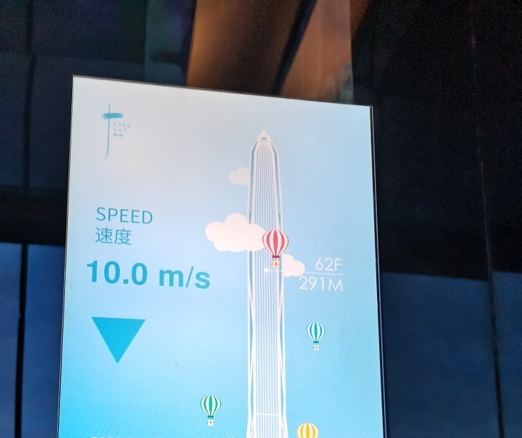 登云际观光层所乘坐的是高速电梯,以每秒10米的速度,不到1分钟即可到达116层观光层。