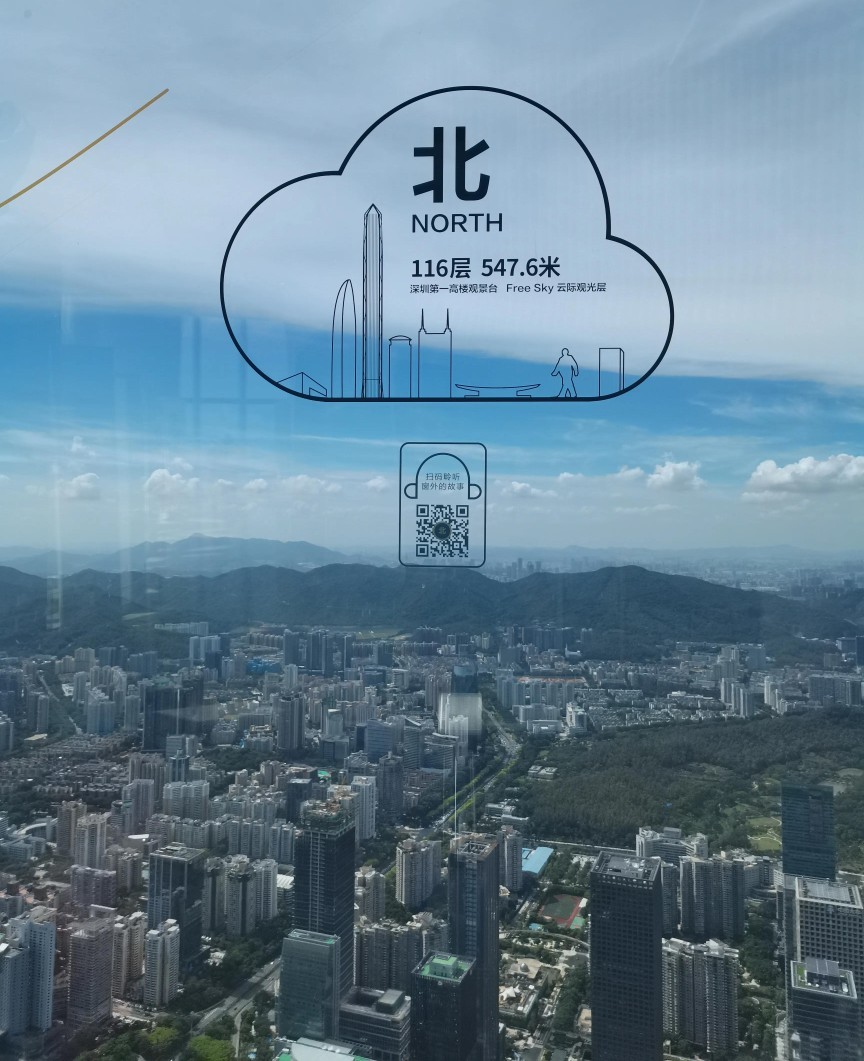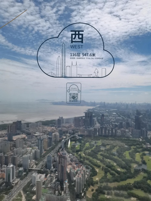 平安大厦总高度为600米,云际观光层位于大厦的116层,距地高度547.6米,可360度无障碍俯瞰鹏城全貌。
